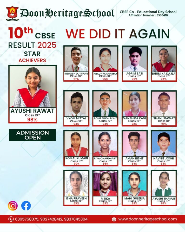 Christmas 2025 Sports Day 2025 Annual Day 2025 Republic Day 2025 A Salute to Sporting Brilliance: Doon Heritage Shines Bright Mango Party 2025 Independence Day Investiture Ceremony 2025 Workshop on Nutrition for Women & Children Recitation Programme 2023-24 Founder's Day Celebration Photo Gallery Leadership Award 2026